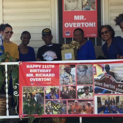 For Veteran’s Day, our chapter had the privilege to visit with the then oldest American veteran, Mr. Richard Overton. He was very happy during our visit “to see so many ladies” and smiled nonstop. We presented him with some of his favorite cigars, which earned us an invitation to come visit again. At the age of 112, Mr. Overton died in December of 2018.